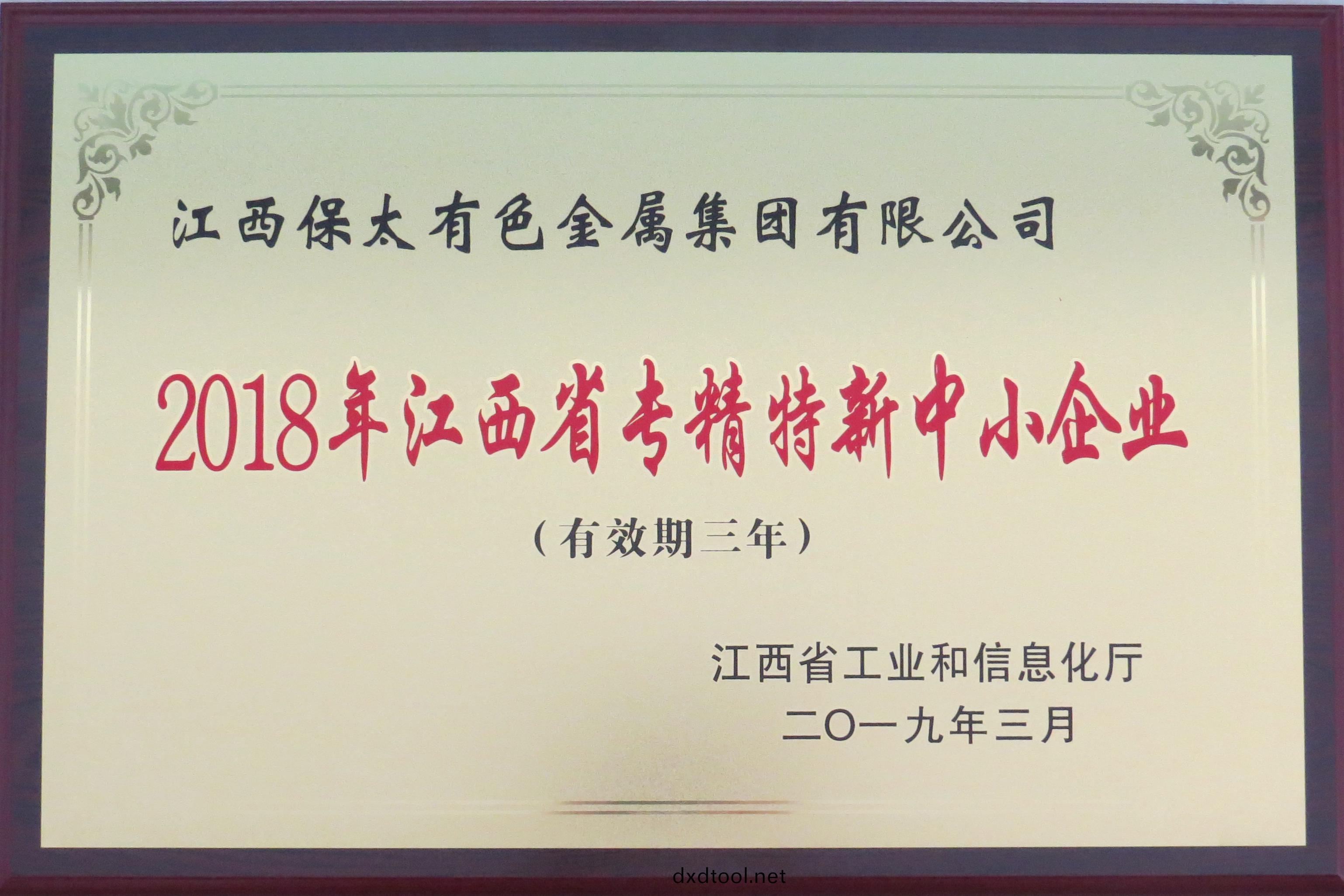 ? "Specializationand novelty" small and medium-sized enterprises are small and medium-sizedenterprises with the characteristics of "specialization, refinement,characteristics and novelty".Jiangxi Baotai Group is a medium-sized enterprise,which won the title of "2018 provincial 'Specialization and novelty' smalland medium-sized enterprises". It is a high affirmation of Jiangxi BaotaiGroup's industry position, market space, core competitiveness and goodsustainable development by Jiangxi Provincial Department of Industry and InformationTechnology, and it is also a kind of encouragement and support.